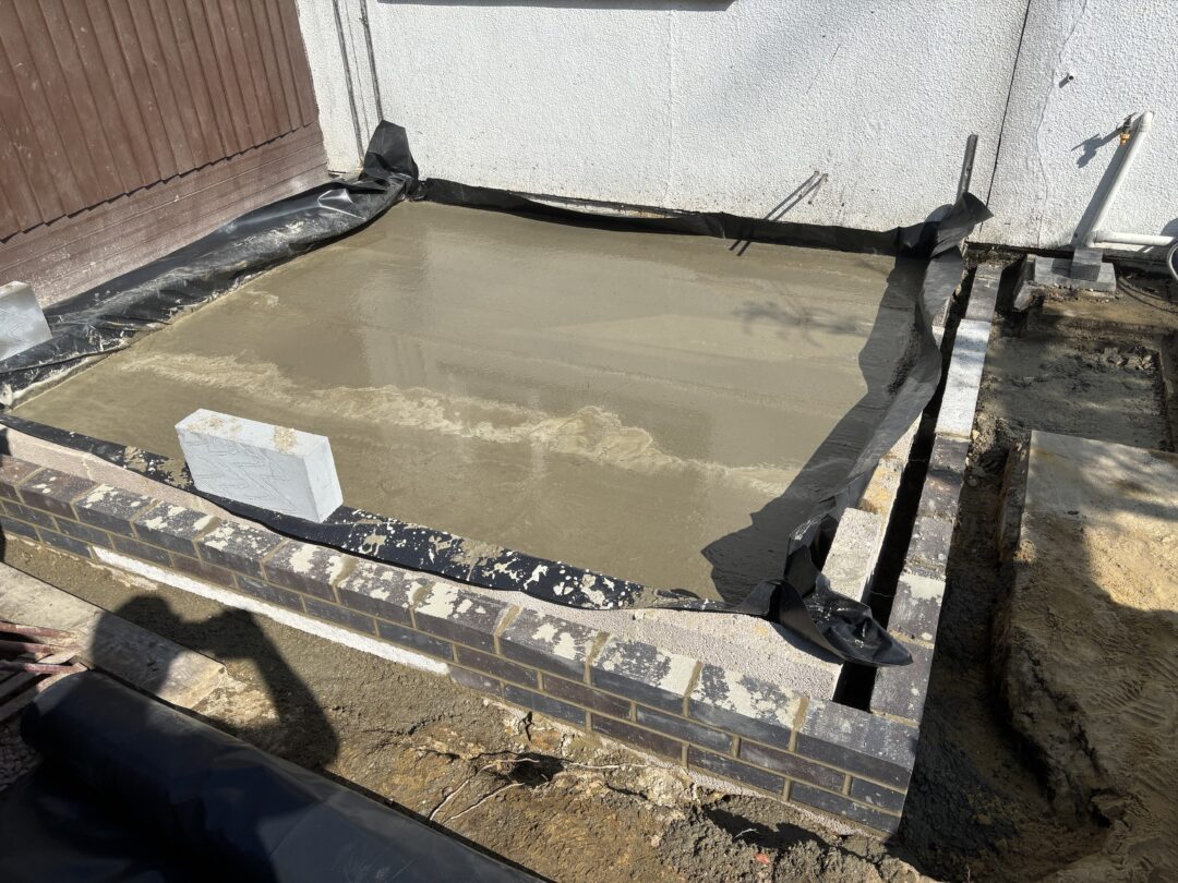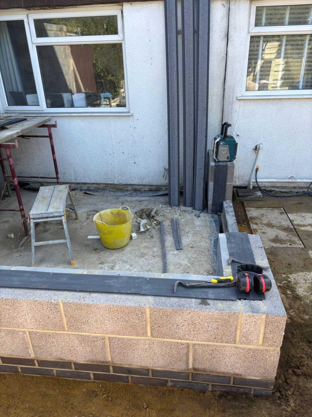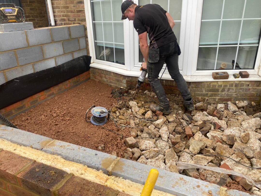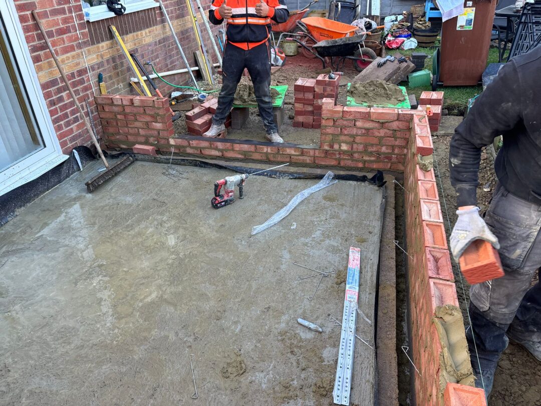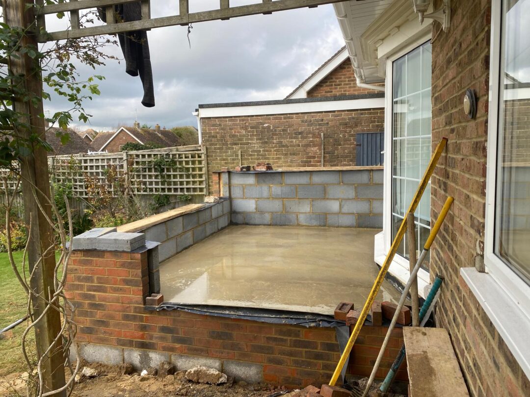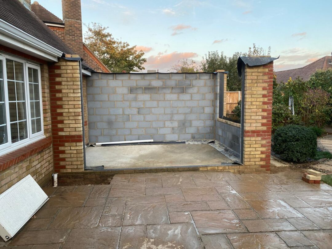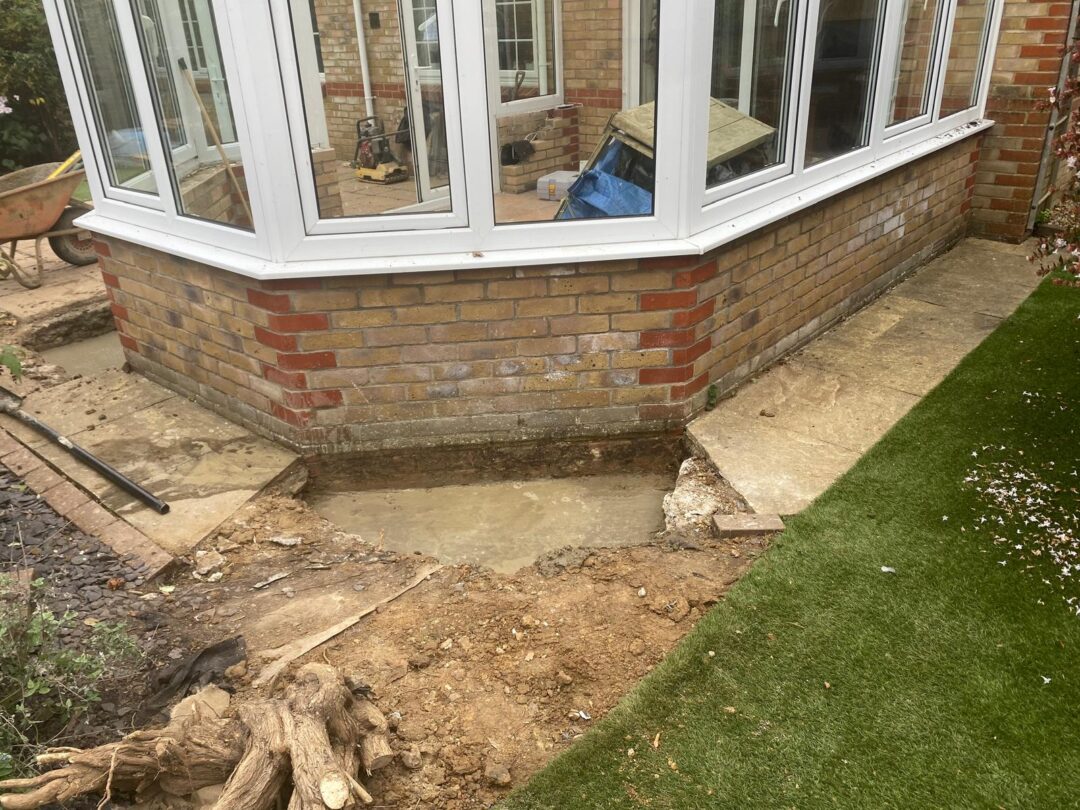 - The existing conservatory has been removed, with the new base and walls now in place.