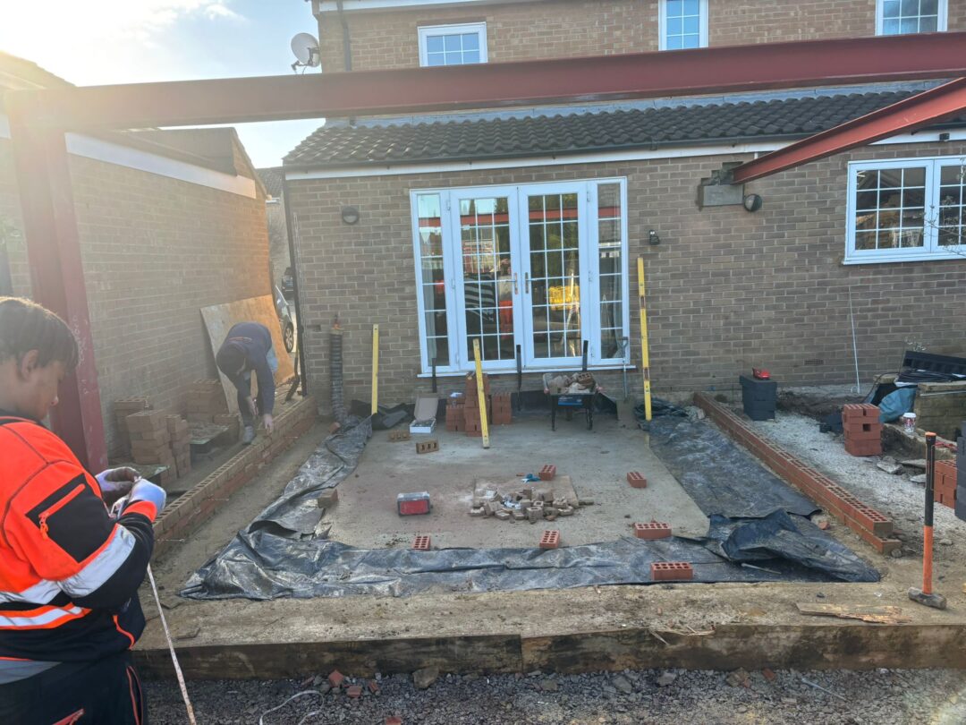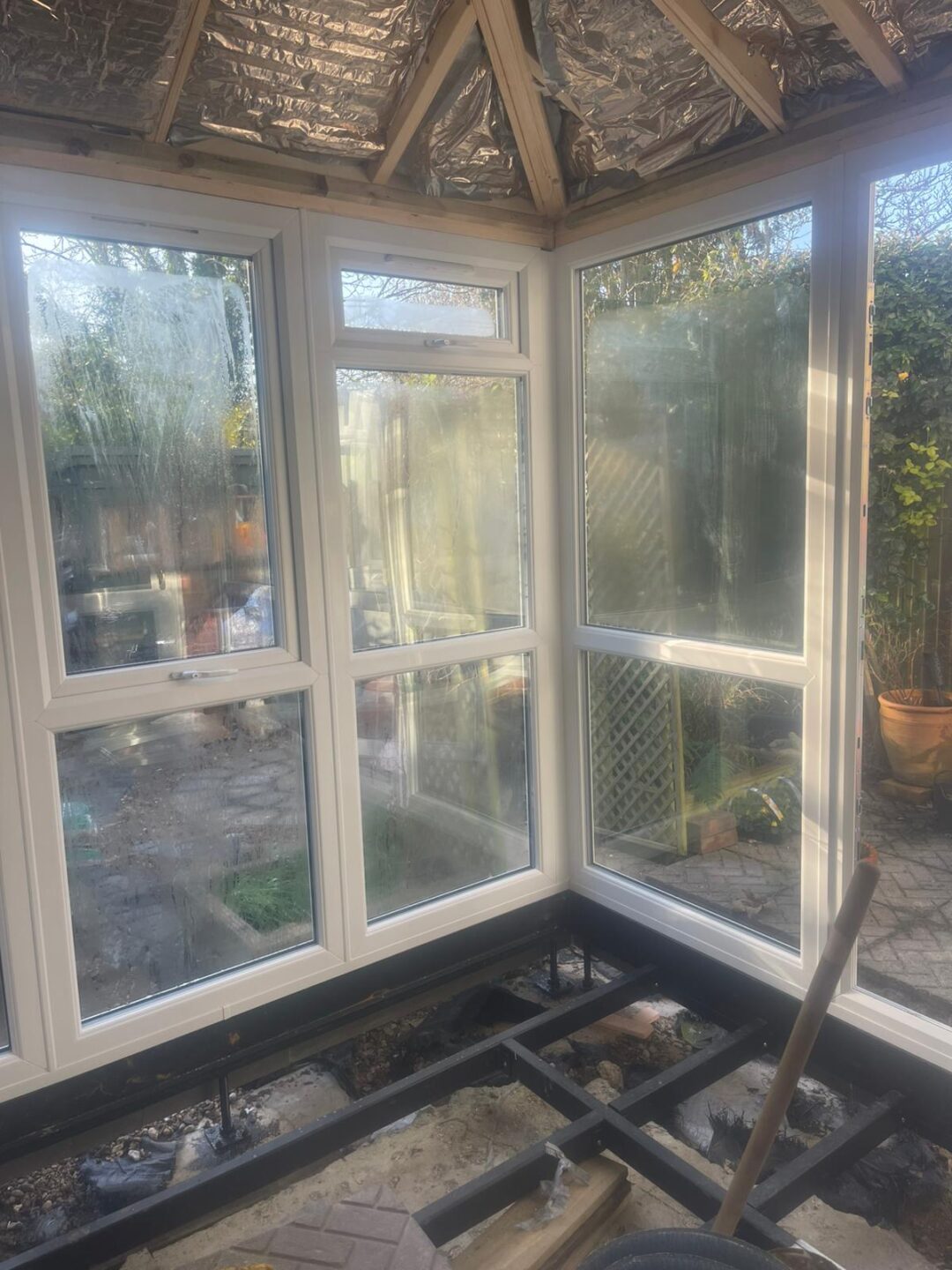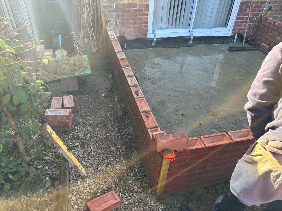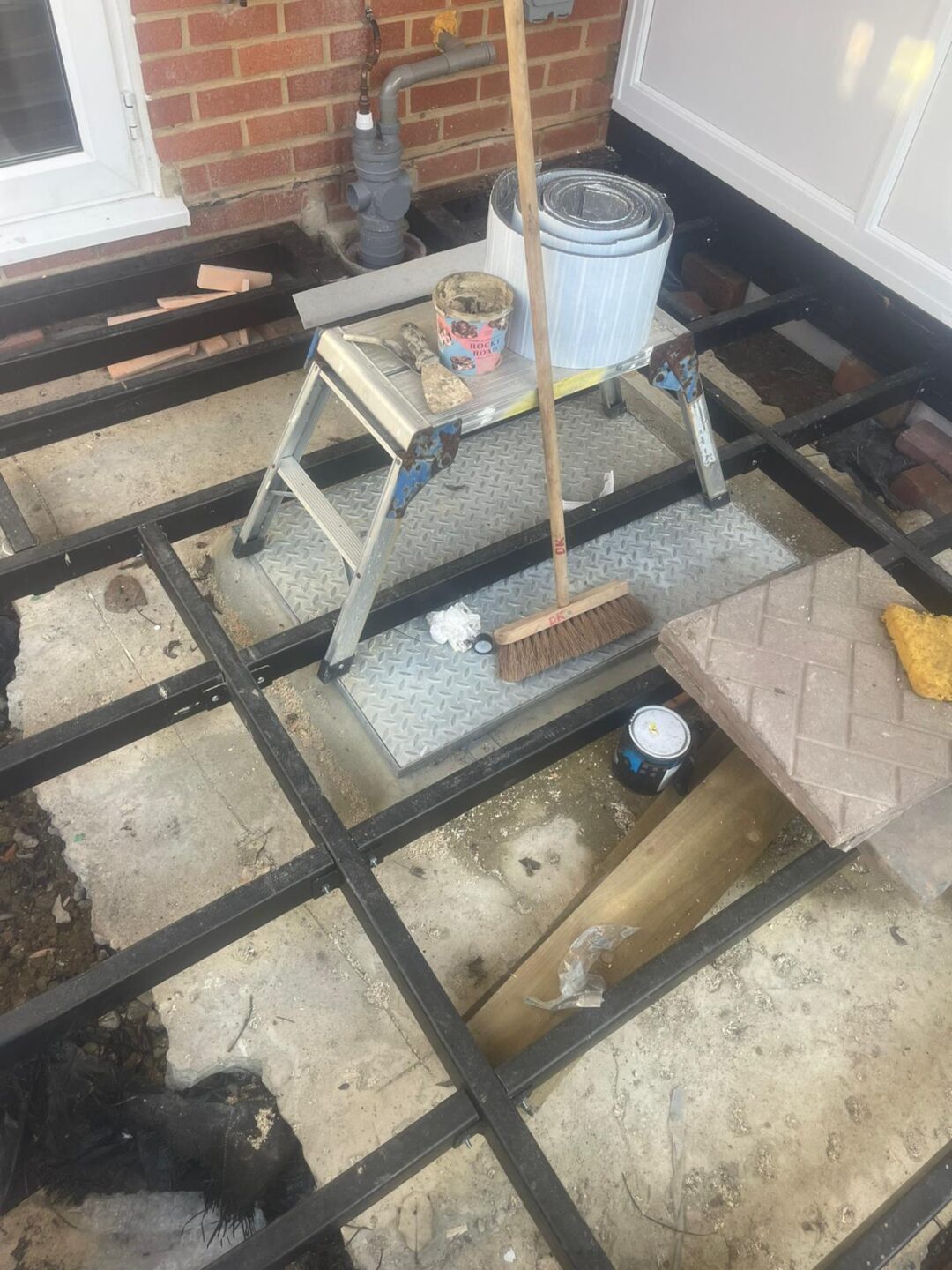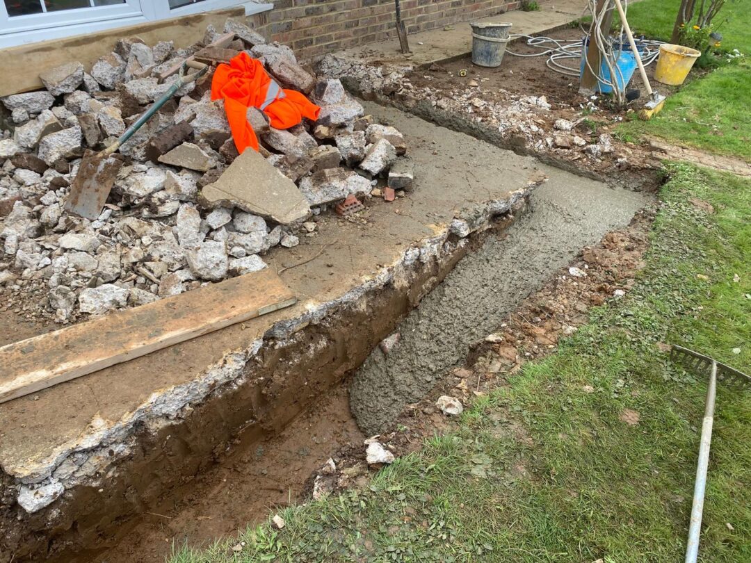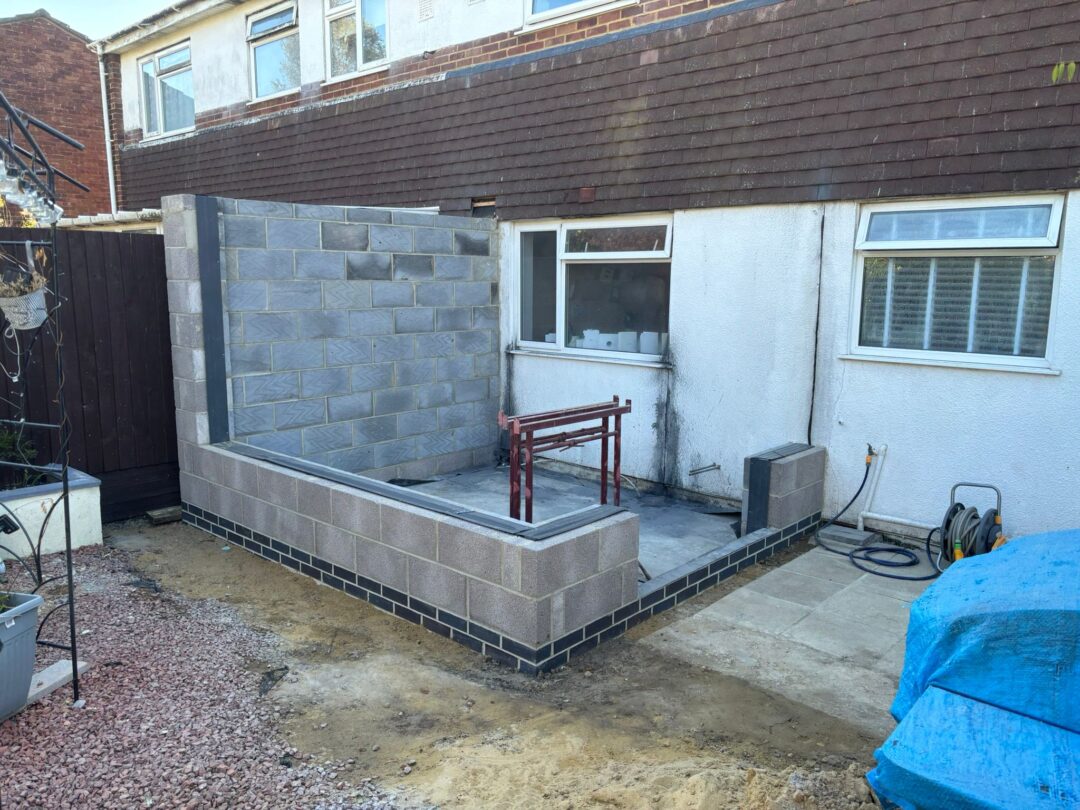 - The existing conservatory has been removed, with the new base and walls now in place.