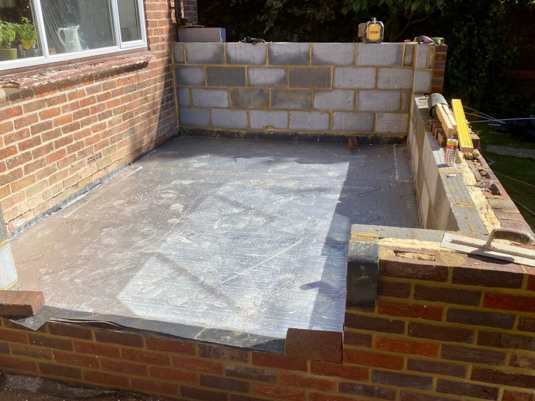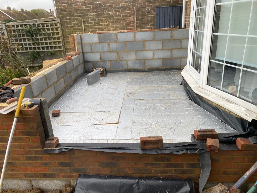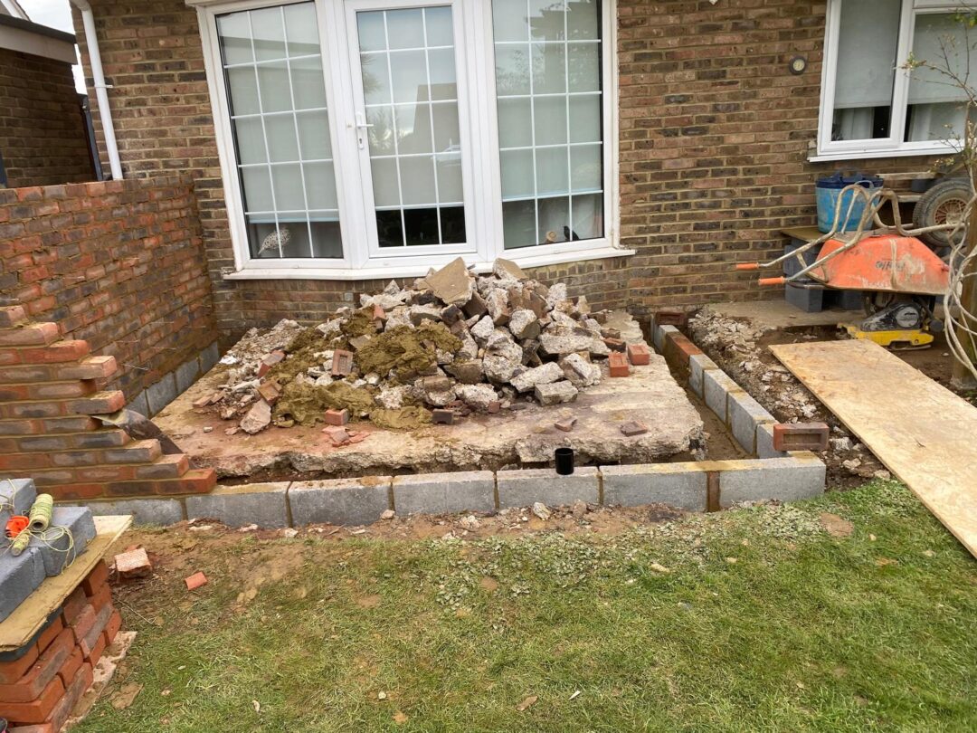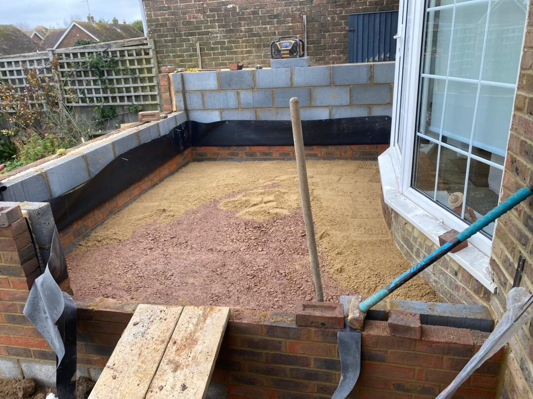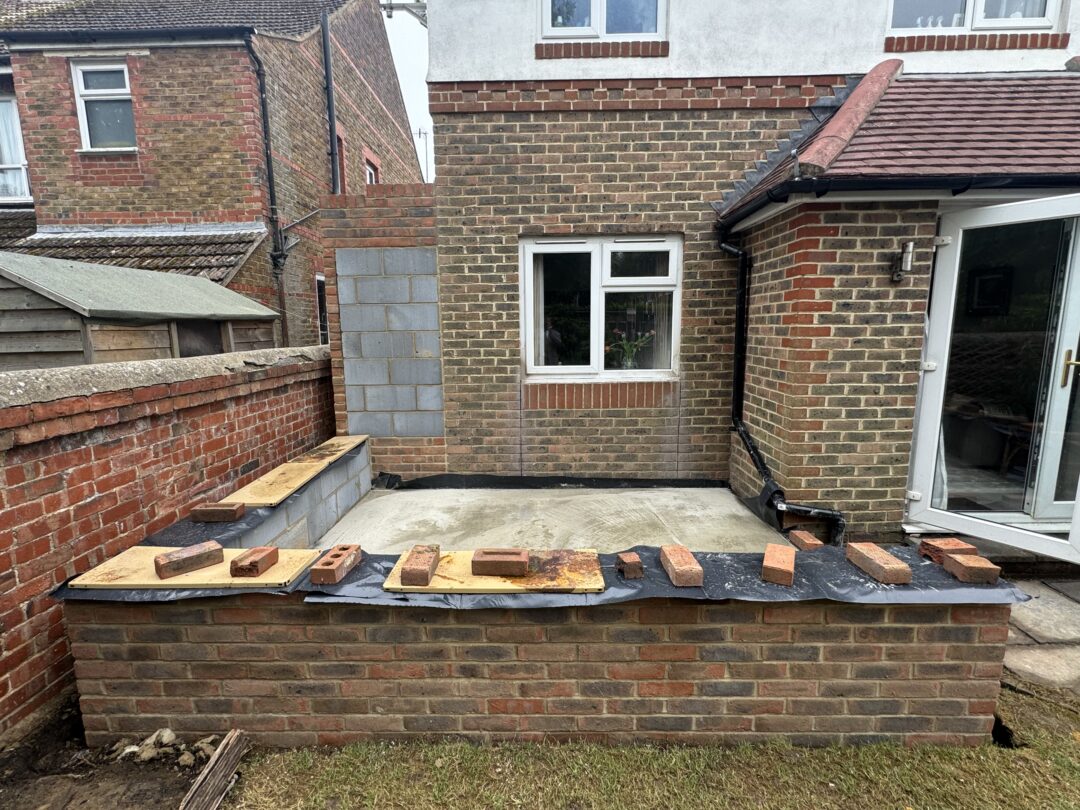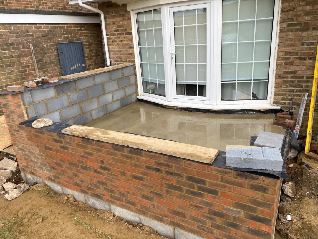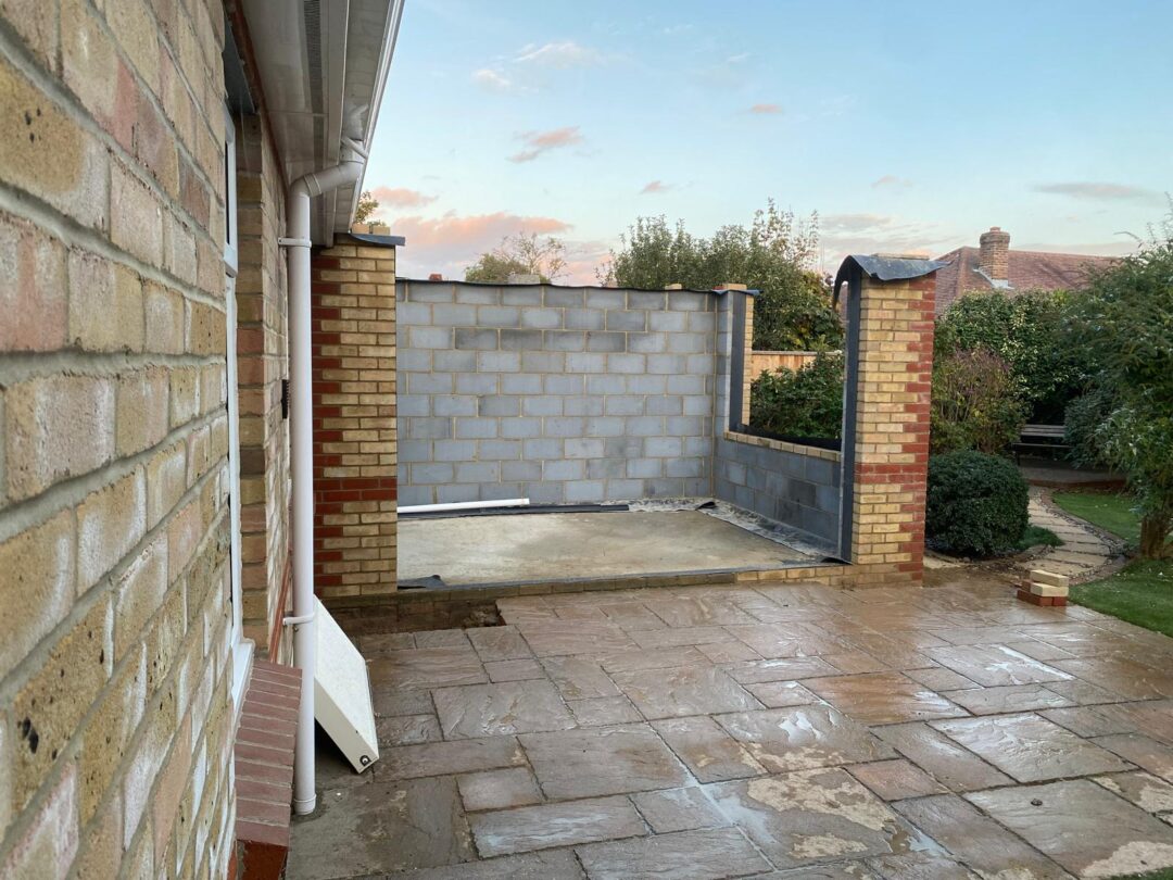 - The existing conservatory has been removed, with the new base and walls now in place.