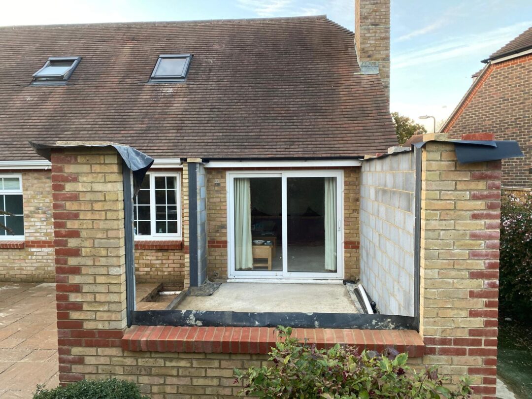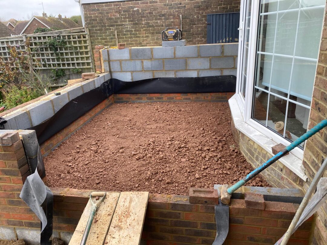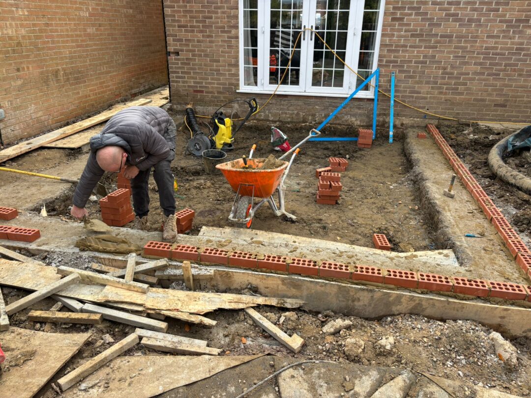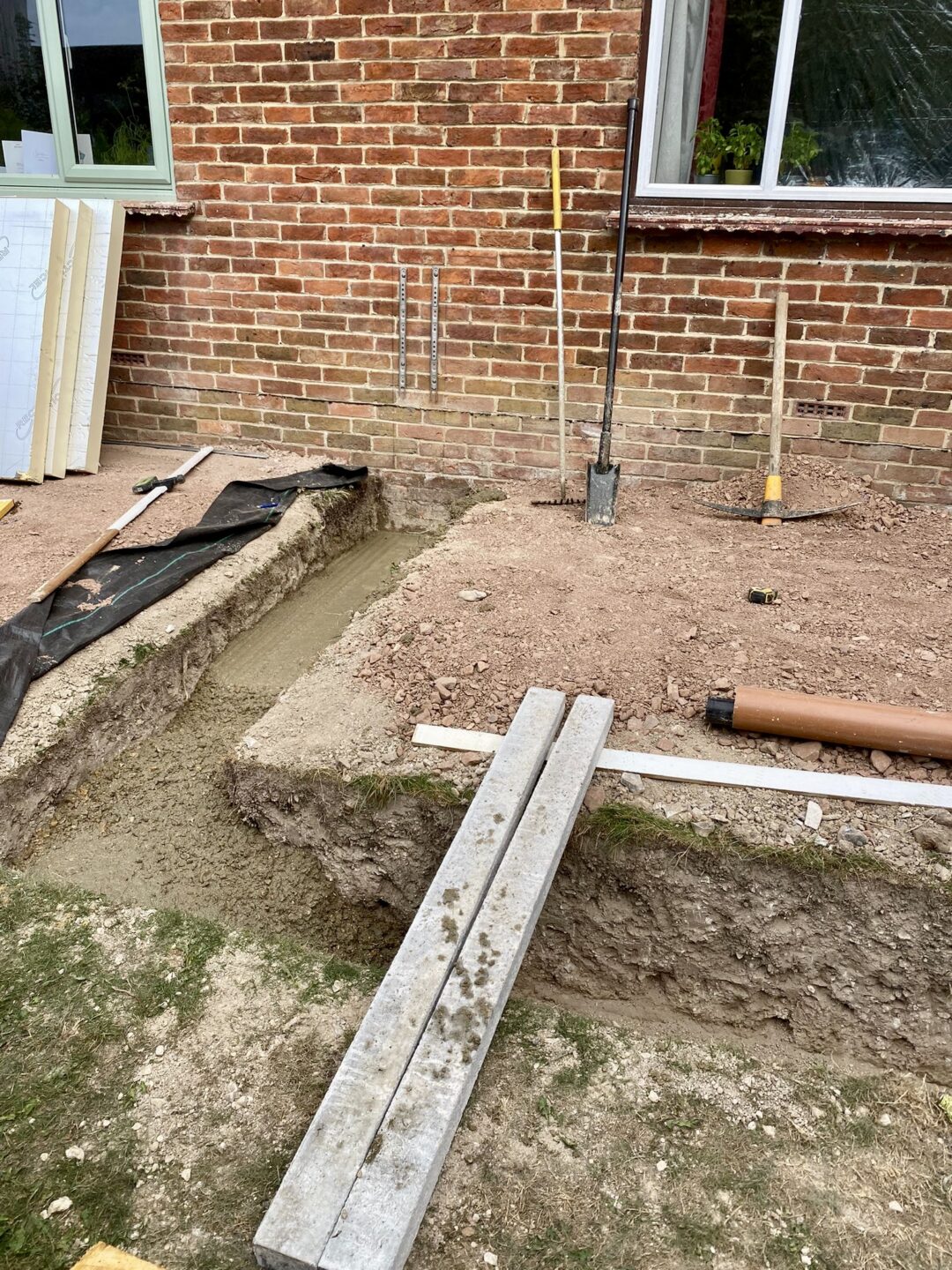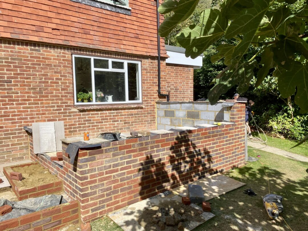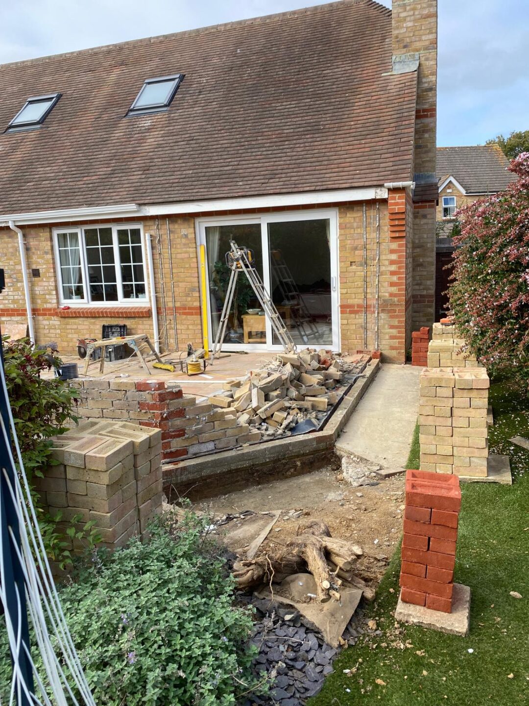 - The existing conservatory has been removed, with the new base and walls now in place.