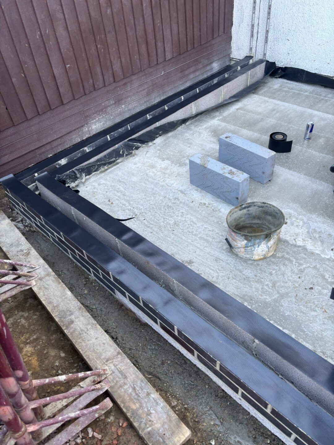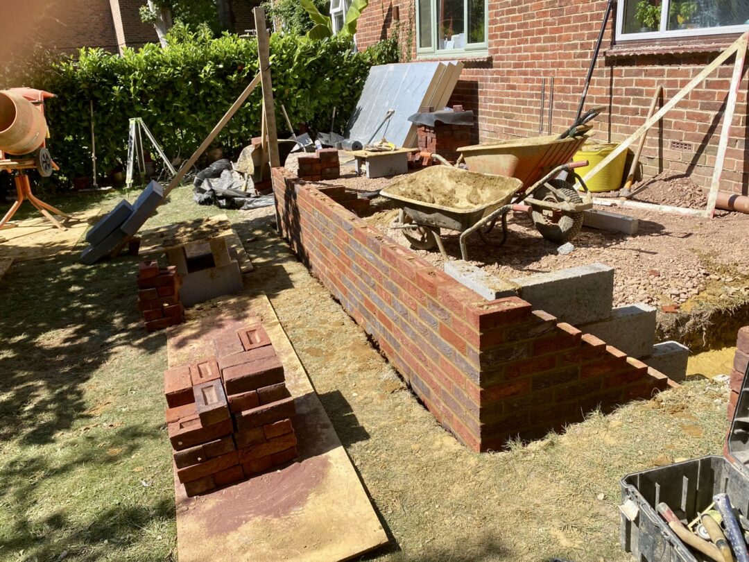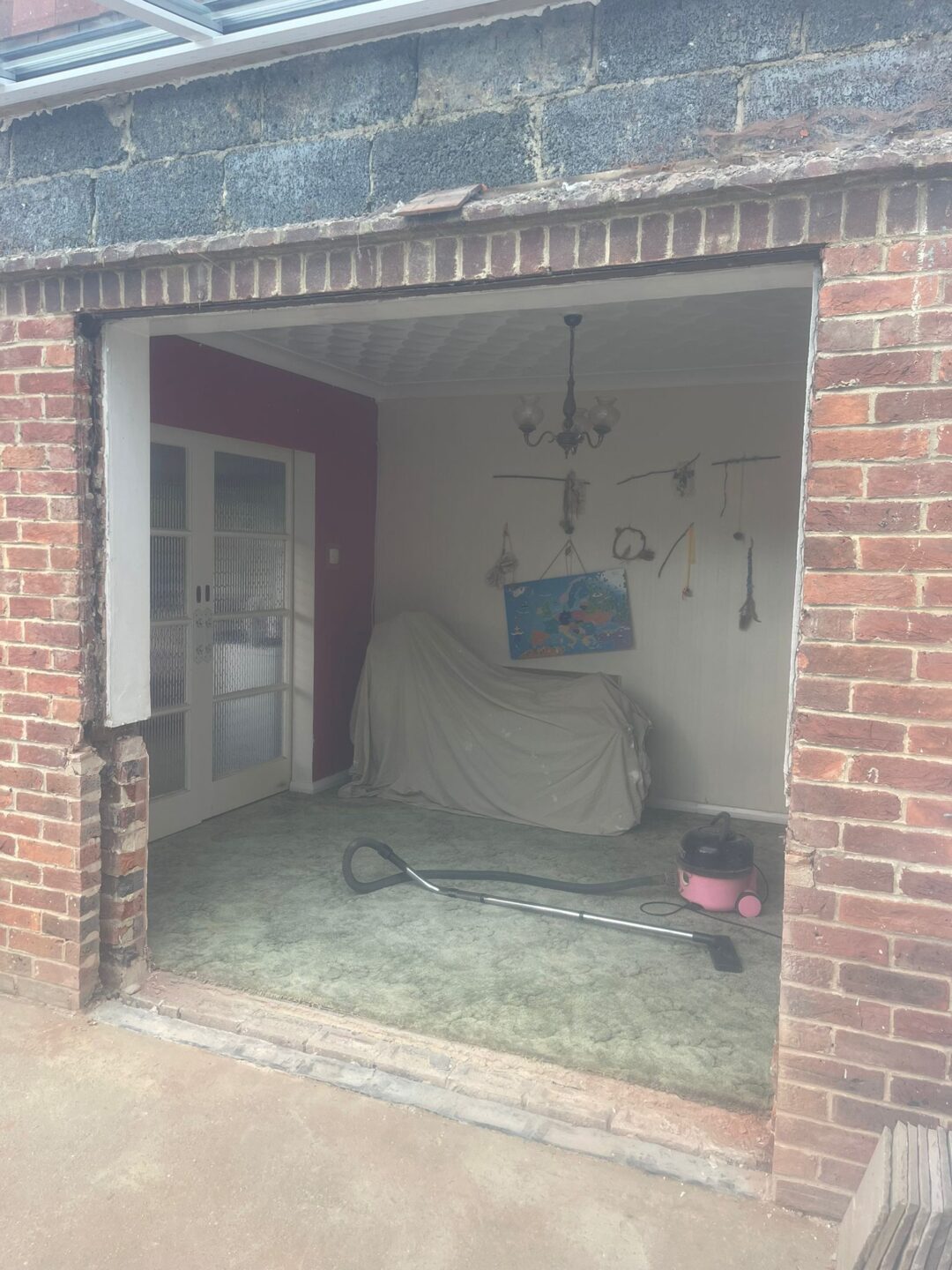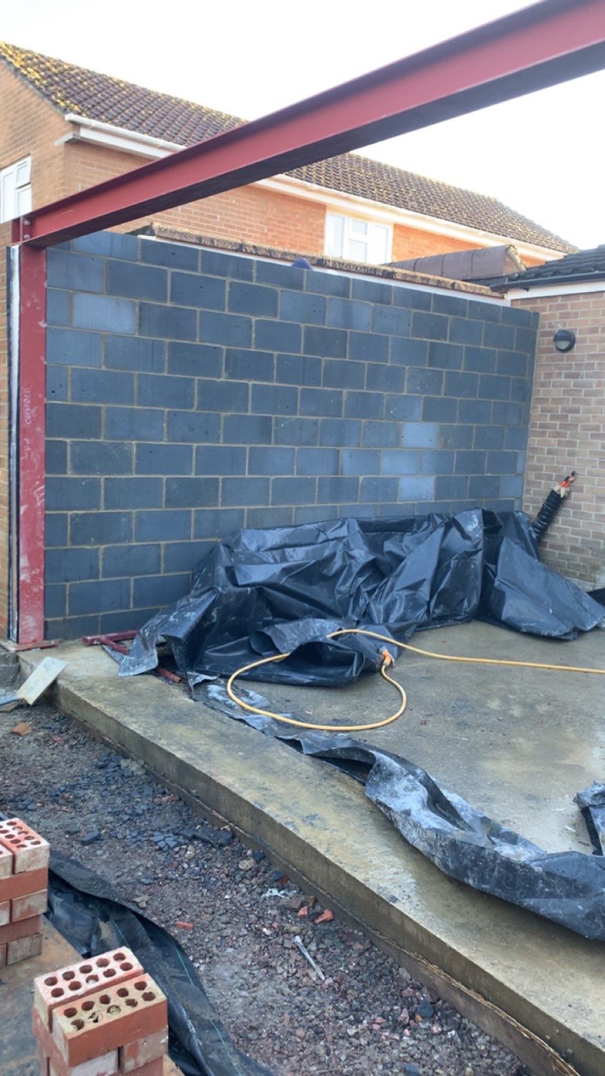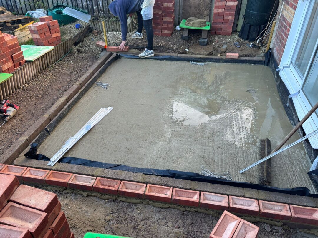 - The existing conservatory has been removed, with the new base and walls now in place.