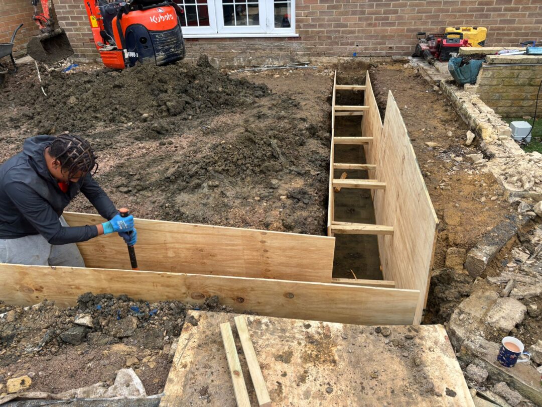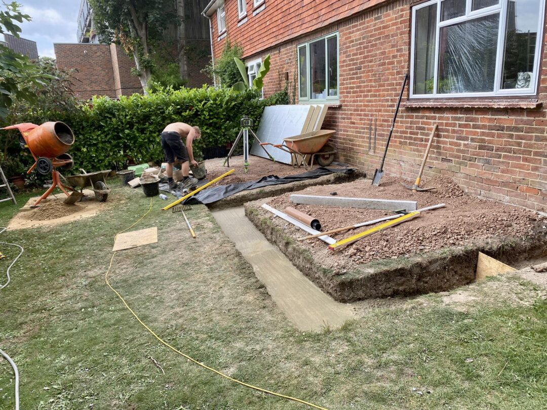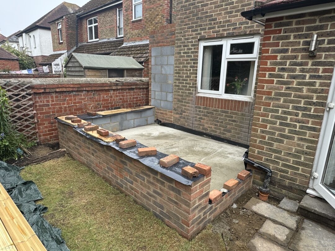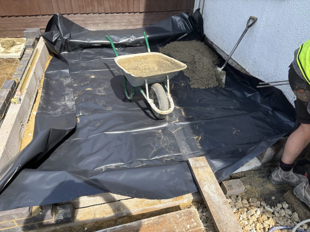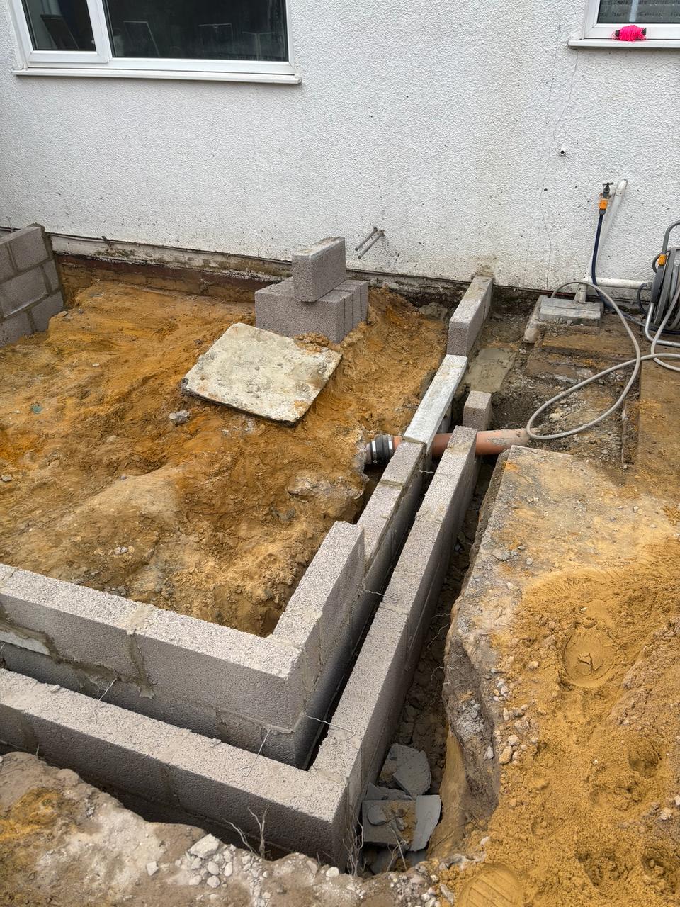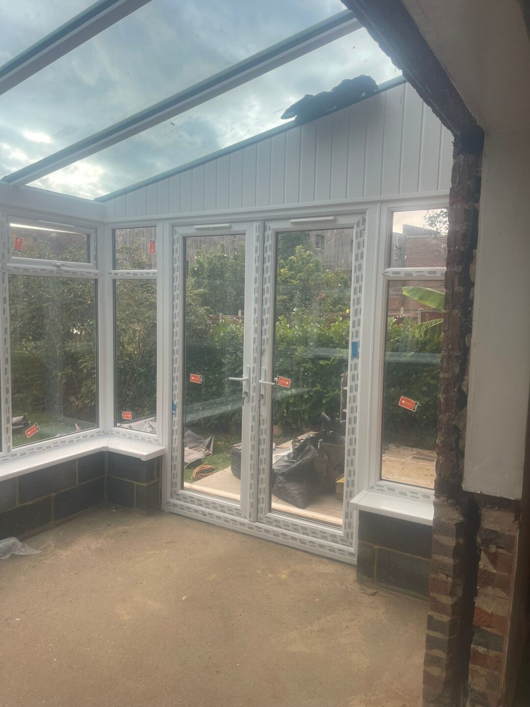 - The existing conservatory has been removed, with the new base and walls now in place.