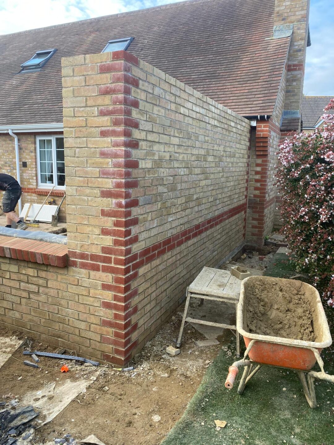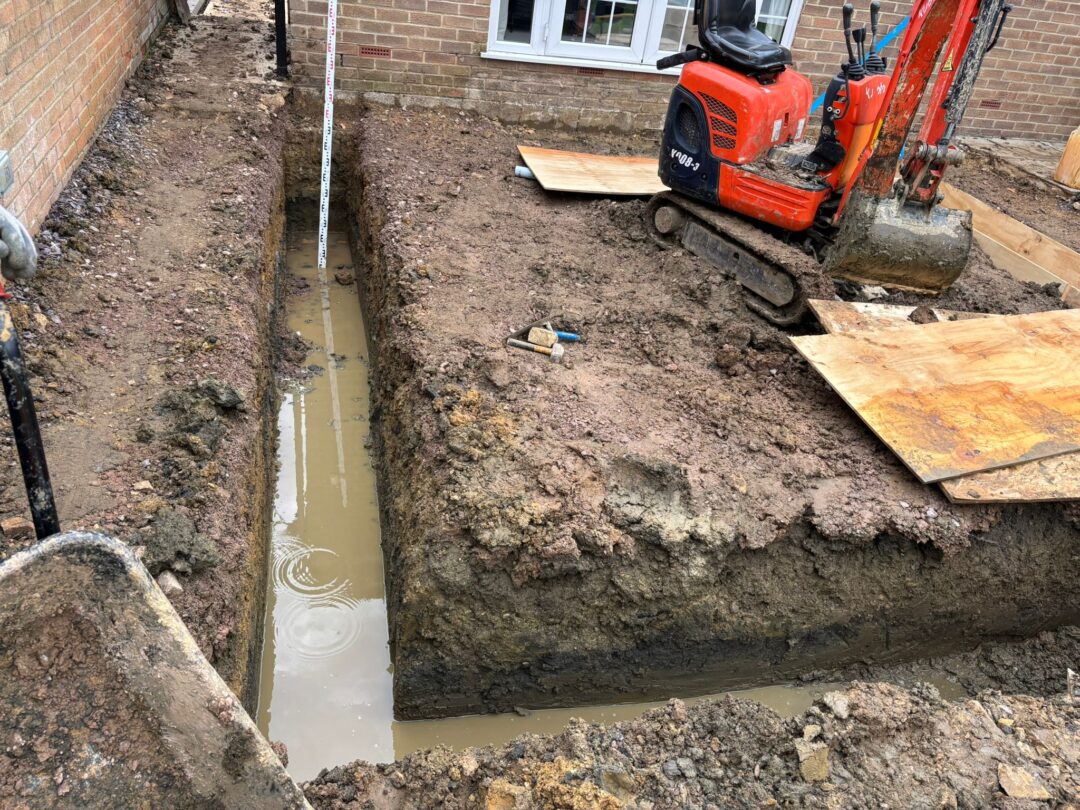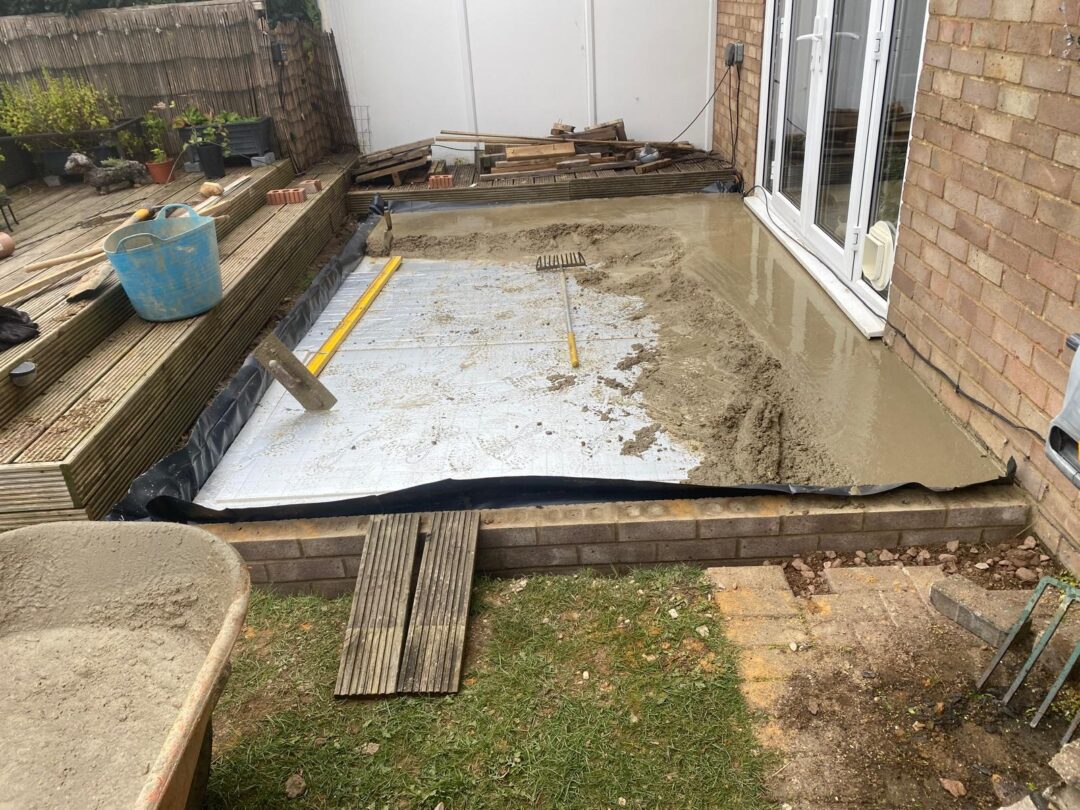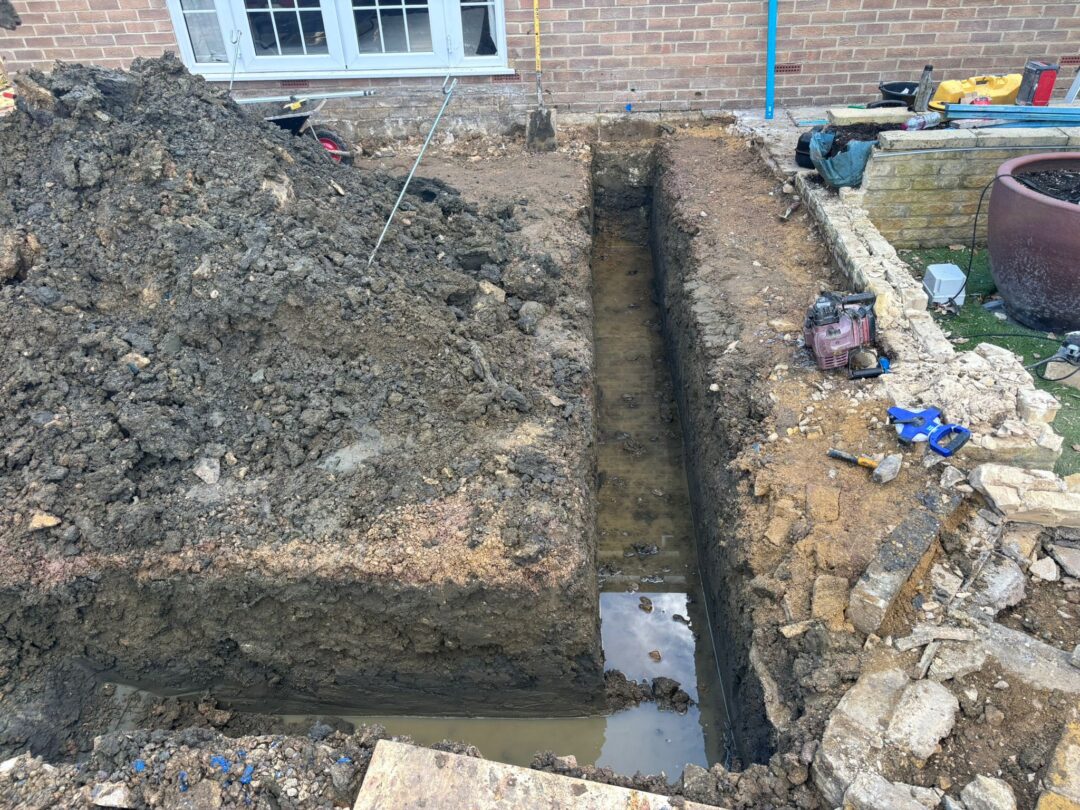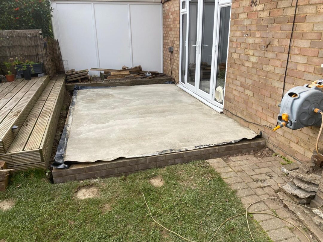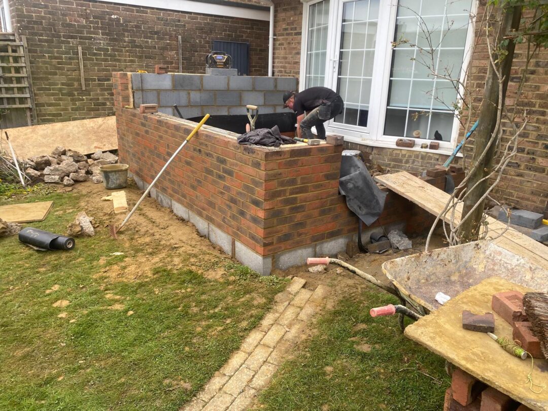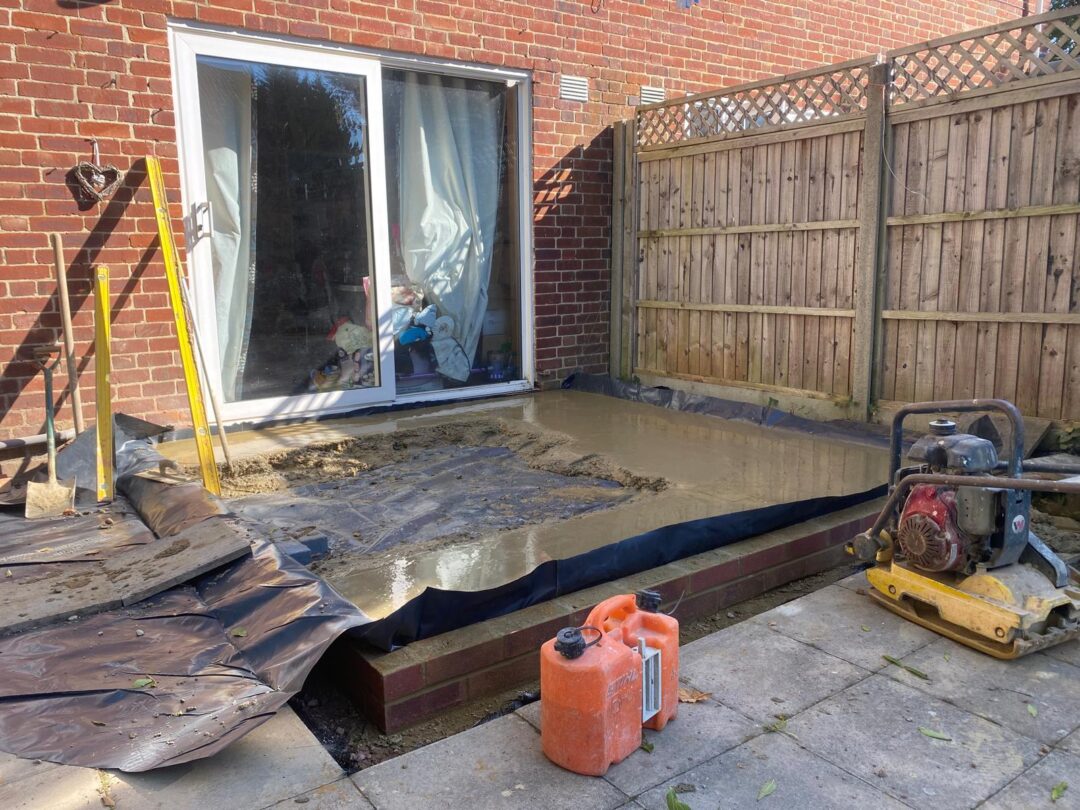 - The existing conservatory has been removed, with the new base and walls now in place.