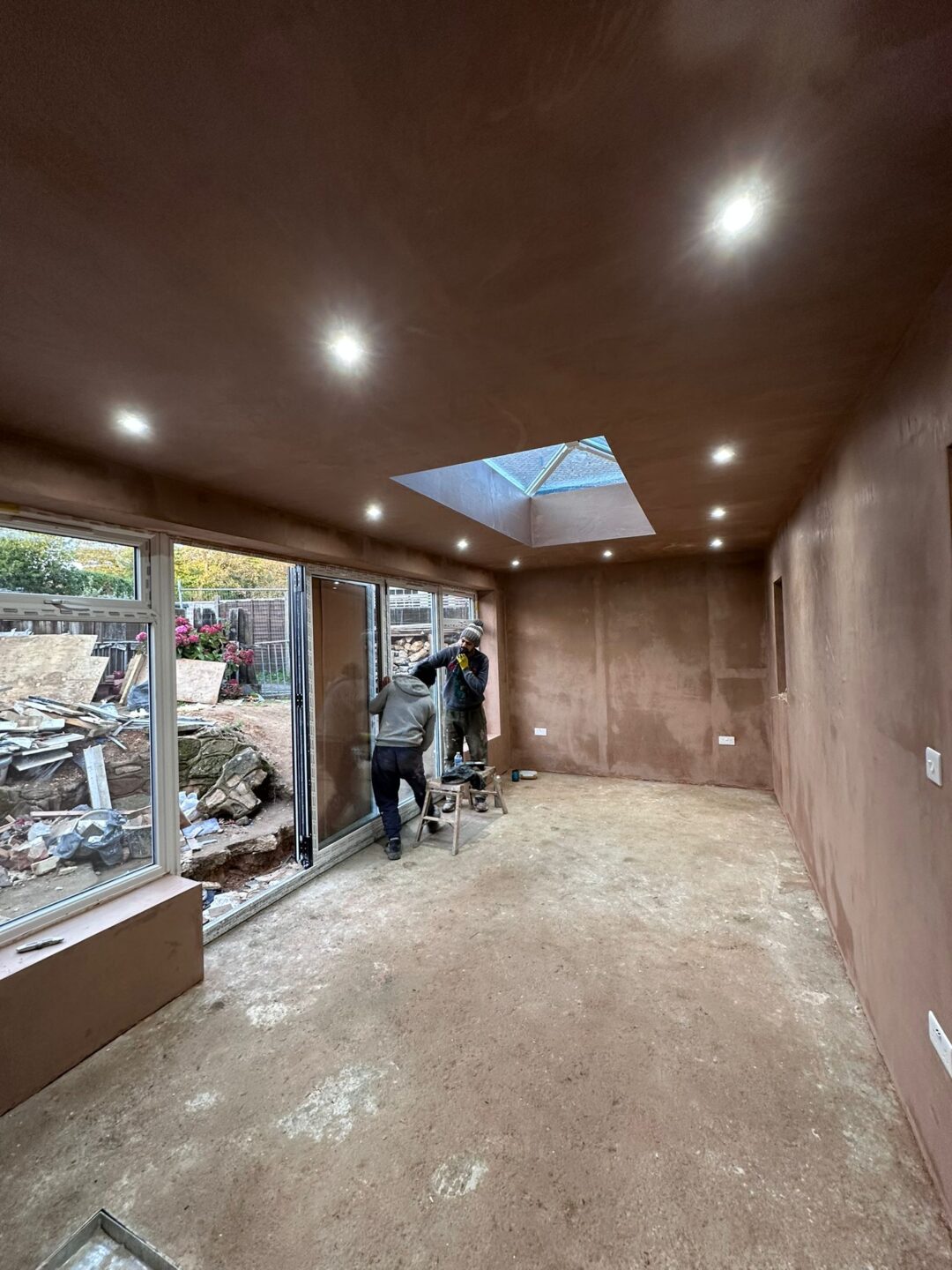- Fitting, plastering, and electrics have all been completed, transforming the space into a bright, modern extension.